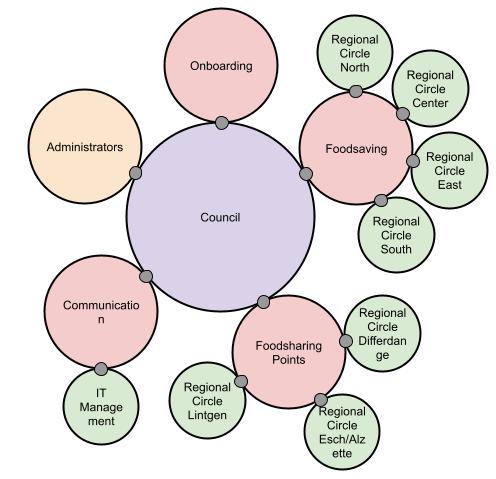- Foodsharing Luxembourg est une organisation sociocratique. Aucune personne ne détient tous les pouvoirs. Les décisions sont prises en consultation avec les cercles.