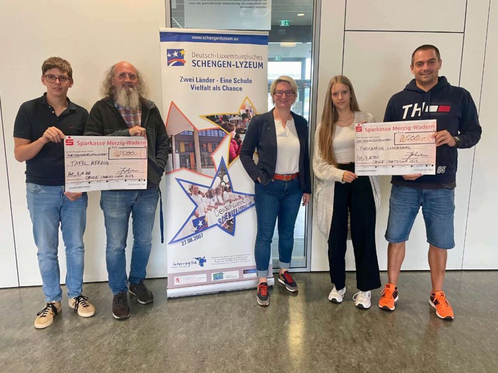 Mir si ganz dankbar fir d’Spend vun 2500€, déi mir vum Däitsch-Lëtzebuergesche Schenge-Lycée kritt hunn! D’Sue goufe mam Spendelaf am Juli 2023 gesammelt. Eise Foodsaver Misch huet de 17. Oktober un der offizieller Check-Iwwerreechung deel geholl. Villmools Merci dëser groussaarteger Schoulgemeinschaft!