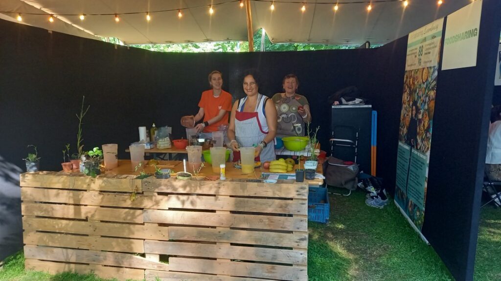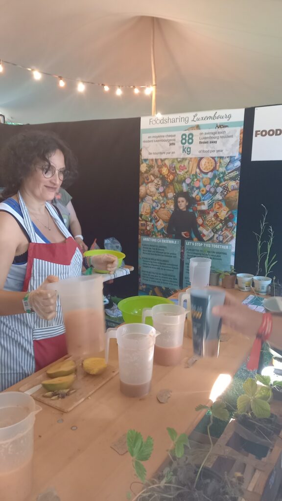 Mir haten ee Smoothie-Stand mat gerettetem Uebst op de Francofolies 2024 zu Esch/Uelzecht an hunn iwwert op Liewensmëttelverschwendung opmierksam gemaach.
